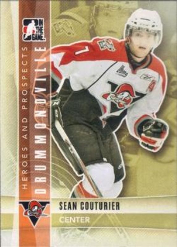 The Sean Couturier 2011 In The Game Heroes & Prospects #61 Base Rookie card is 1 of 56 Sean Couturier's card variations in the 2011 In The Game Heroes & Prospects set being tracked by Sports Card Investor, including Autographs, Complete Jersey Silver, Game Used Emblems Black, Game Used Emblems Silver, and Game Used Jersey Autographs Black.