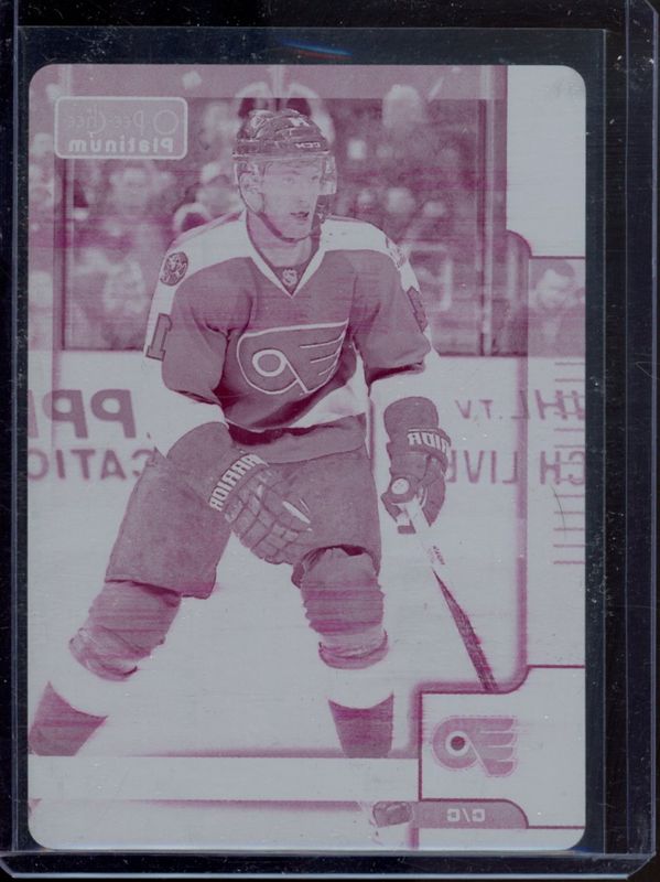 The Sean Couturier 2017 O-Pee-Chee Platinum #116 Printing Plates Magenta /1 card is 1 of 14 Sean Couturier's card variations in the 2017 O-Pee-Chee Platinum set being tracked by Sports Card Investor, including Base, Rainbow, Violet Pixels, Red Prism /199, and Royal Blue Cubes /99.