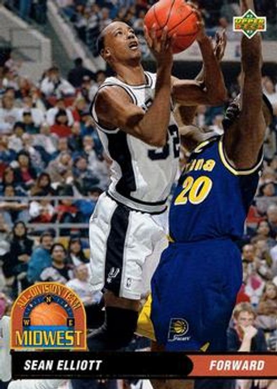 The Sean Elliott 1992 Upper Deck Spanish #47 Base card is 1 of 3 Sean Elliott's card variations in the 1992 Upper Deck Spanish set being tracked by Sports Card Investor, including #19 Base, and #240 Base.