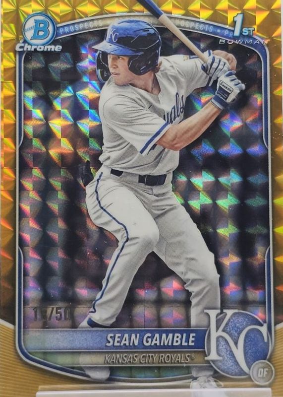 Auctions Ending Soon for Sean Gamble 2025 Bowman Draft #BDC-178 Chrome - Gold Geometric Refractor /50 (1st) RAW