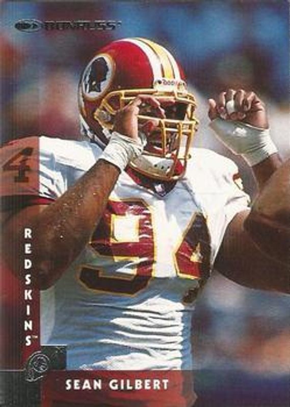 The Sean Gilbert 1997 Donruss #159 Base card is 1 of 3 Sean Gilbert's card variations in the 1997 Donruss set being tracked by Sports Card Investor, including Press Proof Gold Die-Cut, and Press Proof Silver.