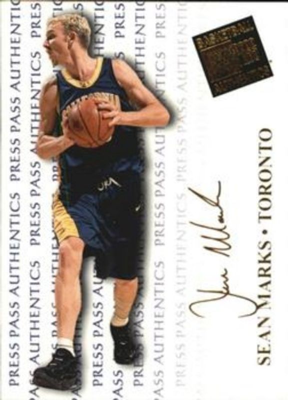 The Sean Marks 1998 Press Pass Authentics #28 Base card is 1 of 3 Sean Marks' card variations in the 1998 Press Pass Authentics set being tracked by Sports Card Investor, including Hang Time, and Autographs.