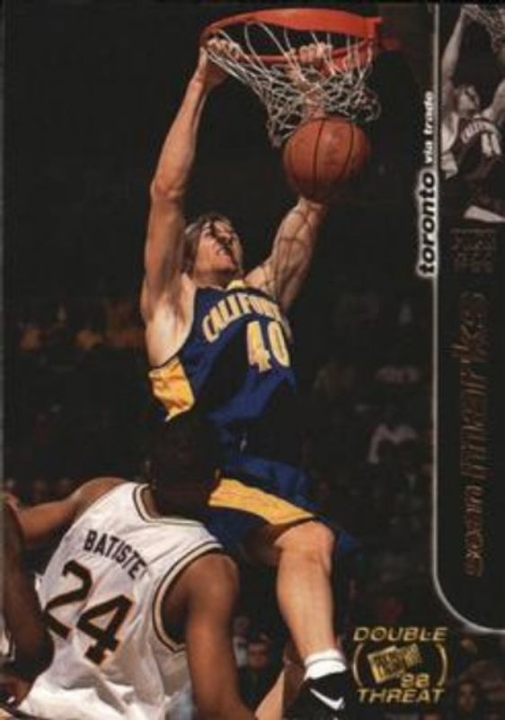 Other popular players in the 1998 Press Pass Double Threat set include Michael Olowokandi, Mike Bibby, Raef LaFrentz, Paul Pierce, and Vince Carter.