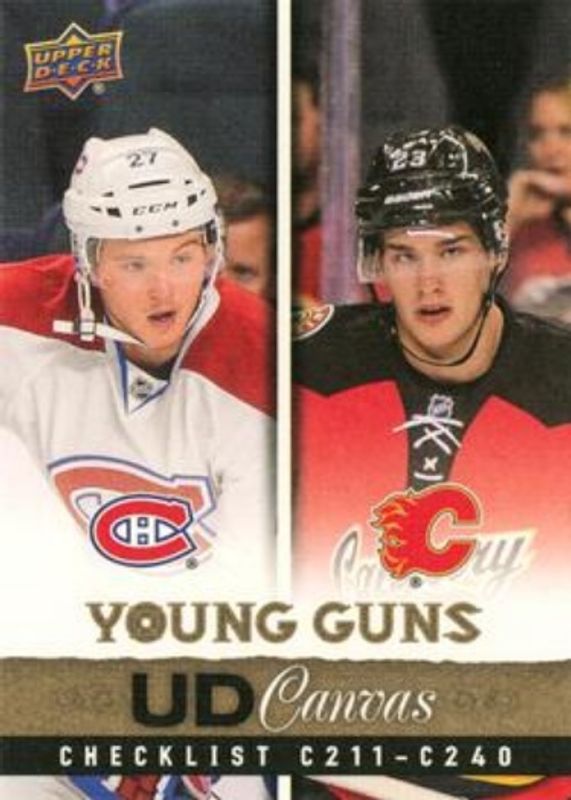 The Sean Monahan 2013 Upper Deck #C240 UD Canvas Rookie card is 1 of 24 Sean Monahan's card variations in the 2013 Upper Deck set being tracked by Sports Card Investor, including #242 Young Guns Base, #C218 Young Guns Canvas, #C240 Young Guns Canvas, #242 Young Guns - Acetate, and #242 Young Guns - Jumbo.