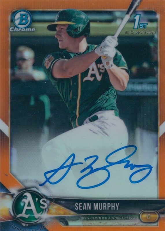 The Sean Murphy 2018 Bowman #CPA-SMU Chrome Prospect Auto - Orange Refractor /25 (1st) card in Raw condition has not changed in price in the last 30 days and was last sold for $39.89 .