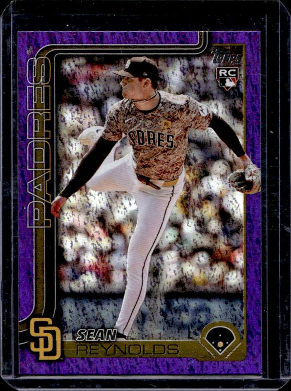 The Sean Reynolds 2025 Topps #246 Purple Holo Foil /250 Rookie card is 1 of 63 Sean Reynolds' card variations in the 2025 Topps set being tracked by Sports Card Investor, including Base, Aqua Holo Foil, Diamante Foil, Holo Foil, and Pink Diamante Foil.