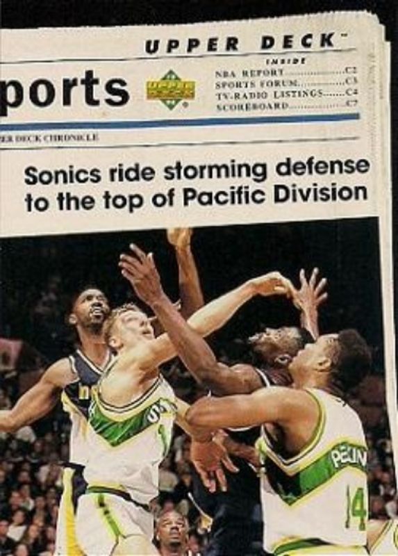 The Seattle SuperSonics 1993 Upper Deck Special Edition #223 Base card is 1 of 3 Seattle SuperSonics' card variations in the 1993 Upper Deck Special Edition set being tracked by Sports Card Investor, including Electric Court, and Electric Court Gold.