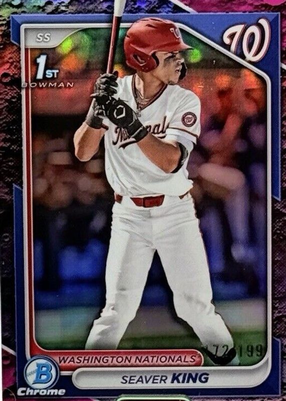 This card is 1 of 50 Seaver King's card variations in the 2024 Bowman Draft set being tracked by Sports Card Investor, including Chrome (1st), Chrome - Bubble Gum (1st), Chrome - Lunar Glow Refractor (1st), Chrome - Peanuts (1st), and Chrome - Pearl Refractor (1st).