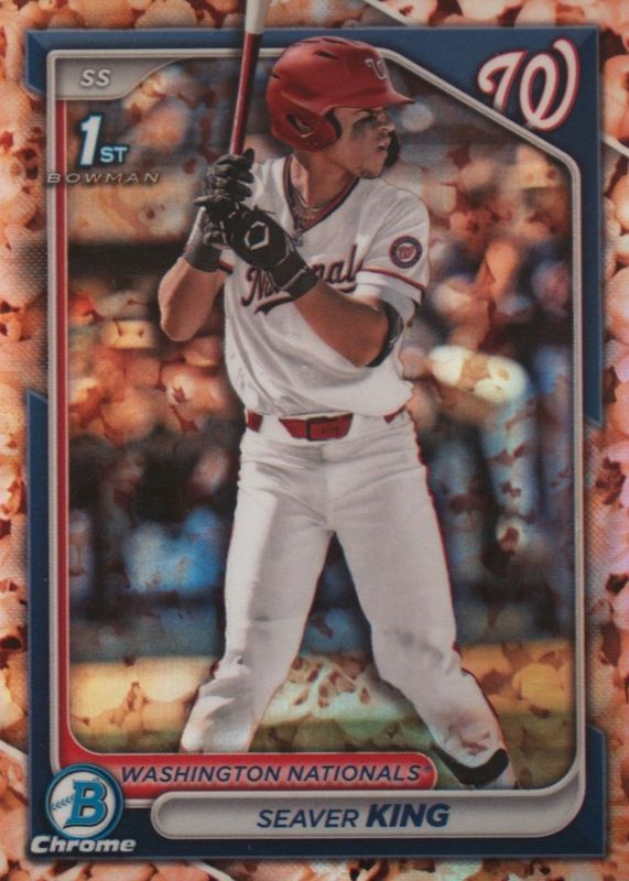 This card is 1 of 50 Seaver King's card variations in the 2024 Bowman Draft set being tracked by Sports Card Investor, including Chrome (1st), Chrome - Bubble Gum (1st), Chrome - Lunar Glow Refractor (1st), Chrome - Peanuts (1st), and Chrome - Pearl Refractor (1st).