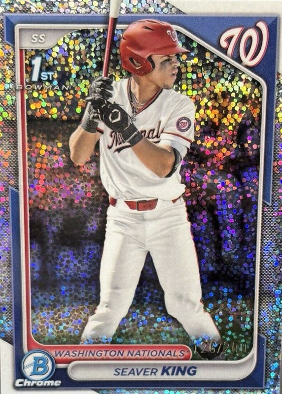 The Seaver King 2024 Bowman Draft #BDC-62 Chrome - Sparkles Refractor /200 (1st) card in Raw condition has not changed in price in the last 30 days and was last sold for $0.99 .