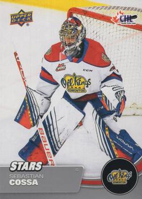 The Sebastian Cossa 2021 Upper Deck CHL #335 Base card is 1 of 16 Sebastian Cossa's card variations in the 2021 Upper Deck CHL set being tracked by Sports Card Investor, including Autographs, Clear Cut, Exclusives /100, High Gloss /10, and Printing Plates Black /1.