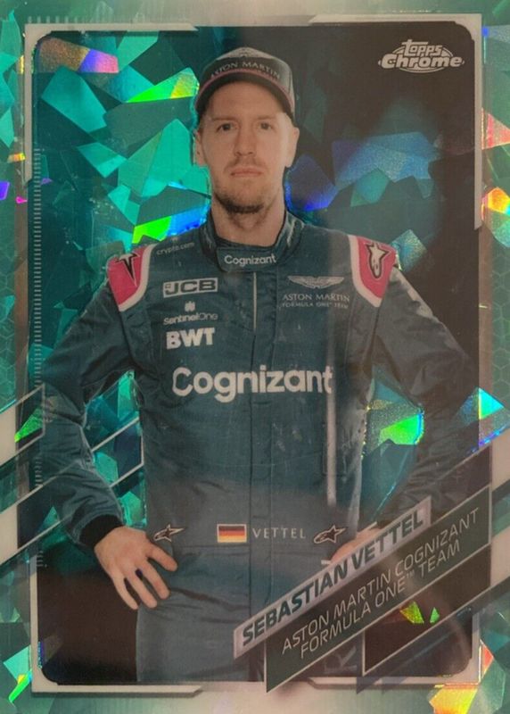 This card is 1 of 11 Sebastian Vettel's card variations in the 2021 Topps Chrome Formula 1 Sapphire Edition set being tracked by Sports Card Investor, including Base, Chartreuse /199, Negative /100, Green /75, and Gold /50.