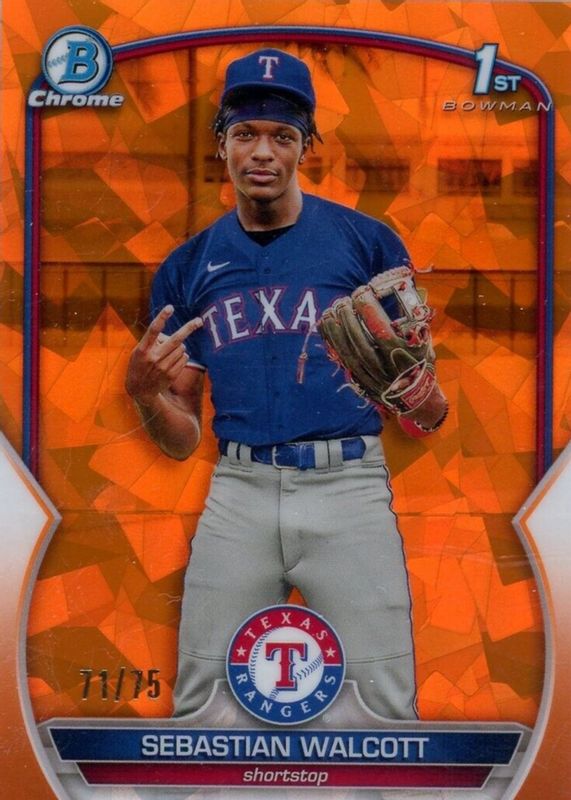 2023 Bowman Chrome Sapphire Sebastian Walcott 1st Orange Refractor 58/75 Rangers