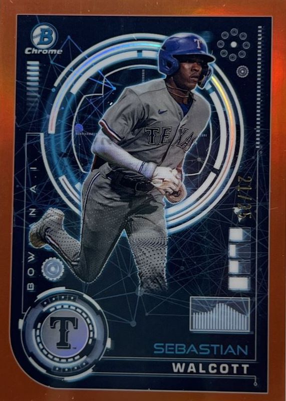 SEBASTIAN WALCOTT 2024 BOWMAN CHROME AI ORANGE RANGERS /25 Q1033
