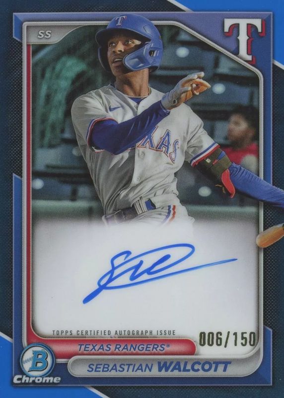 2024 Bowman Chrome Blue Refractor Auto Sebastian Walcott #CPA-SW Rangers RC /150