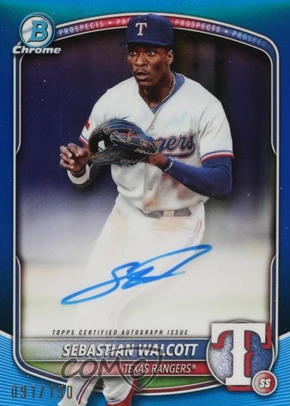 2025 Bowman Chrome Prospect Blue Refractor 91/150 Sebastian Walcott #CPA-SW Auto
