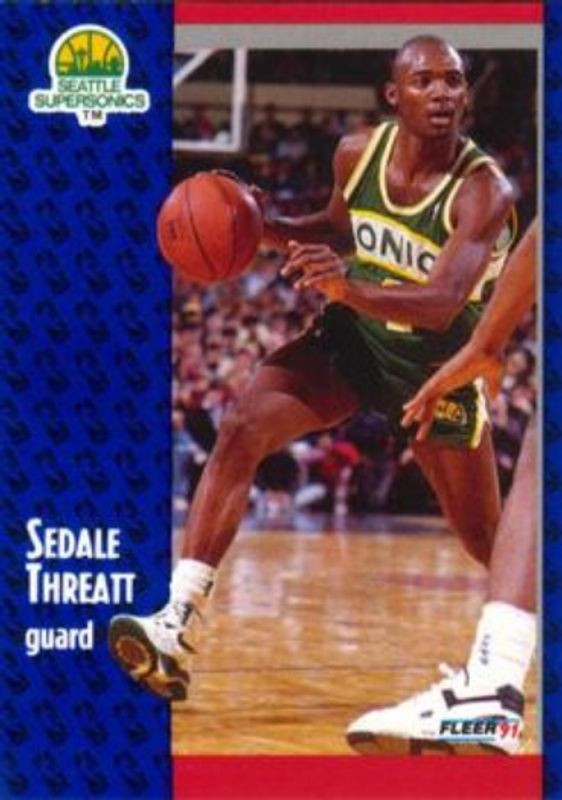 The Sedale Threatt 1991 Fleer #196 Base card is 1 of 4 Sedale Threatt's card variations in the 1991 Fleer set being tracked by Sports Card Investor, including #304 Base, #196 3D Acrylic, and #304 3D Acrylic.