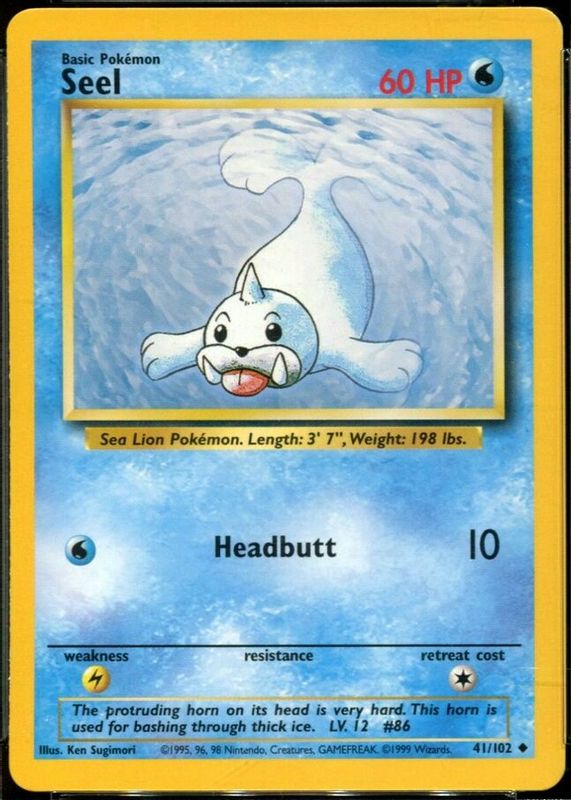 Seel 41/102 – 1999 Pokémon Base Set – WOTC – Excellent/Near Mint