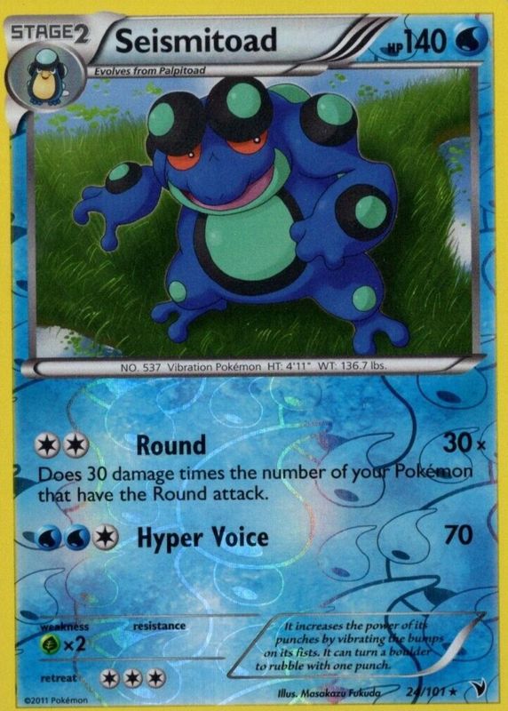 Seismitoad 2011 Black & White: Noble Victories #024/101 Reverse Holo RAW TCG (LIGHTLY PLAYED) Price Guide