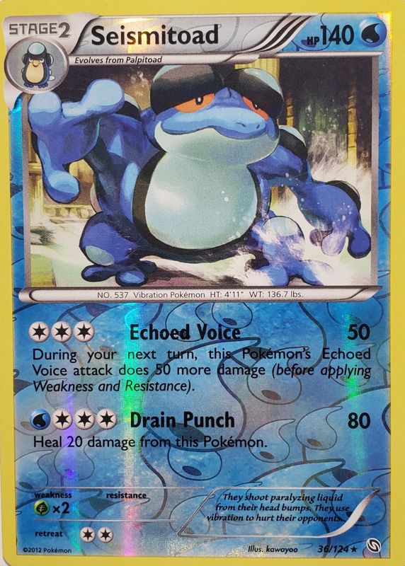 Seismitoad 2012 Black & White: Dragons Exalted #036/124 Reverse Holo RAW TCG (NEAR MINT) Price Guide