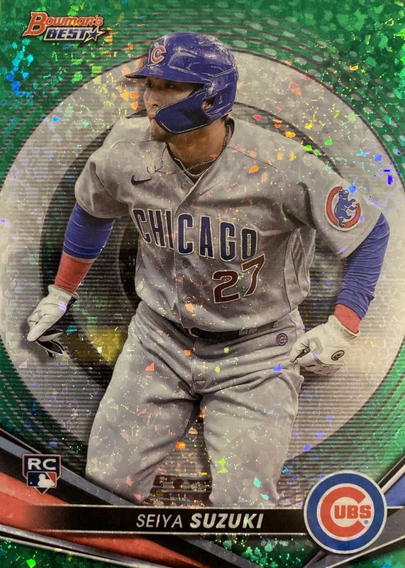2022 Bowman’s Best SEIYA SUZUKI #41 GREEN MINI-DIAMOND REFRACTOR #/99 Cubs