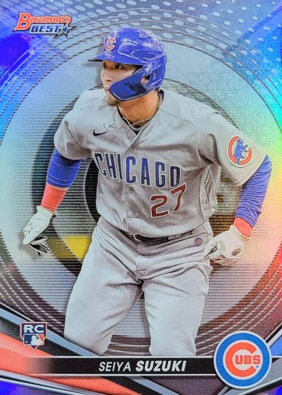 The Seiya Suzuki 2022 Bowman's Best #41 Refractor Rookie card in Raw condition has moved up $0.49 (+32.7%) in the last 30 days and was last sold for $1.99 .