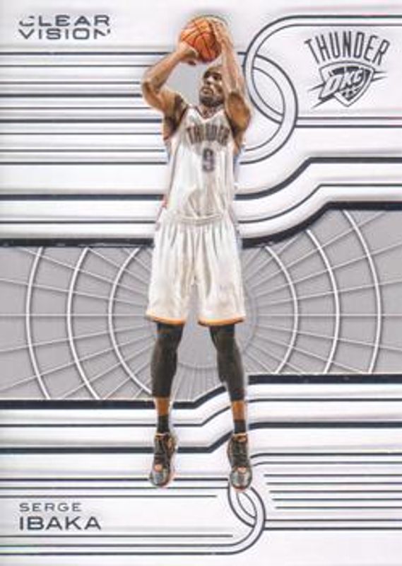 The Serge Ibaka 2015 Clear Vision #48 Base card is 1 of 7 Serge Ibaka's card variations in the 2015 Clear Vision set being tracked by Sports Card Investor, including Bronze, Blue /149, Red /99, Purple /25, and Gold /10.