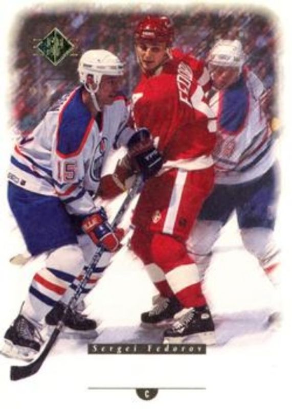 The Sergei Fedorov 1994 SP #24 Premier SP card is 1 of 4 Sergei Fedorov's card variations in the 1994 SP set being tracked by Sports Card Investor, including Base, Die-Cut, and Premier SP Die-Cut.