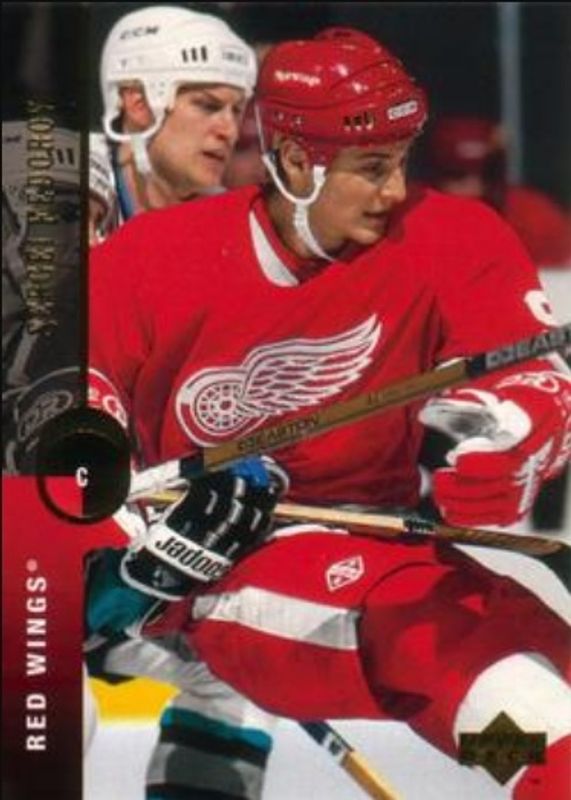 Other popular players in the 1994 Upper Deck set include Wayne Gretzky, Eric Lindros, Pavel Bure, Doug Gilmour, and Brian Leetch.