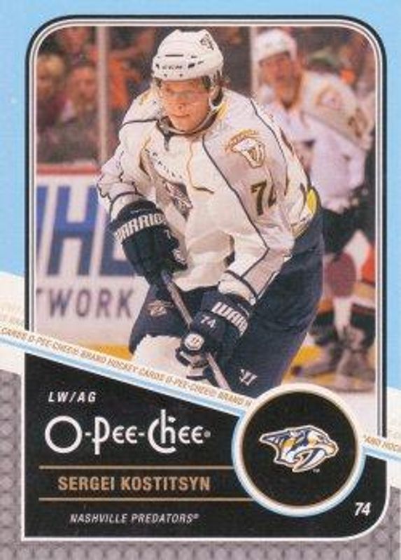 The Sergei Kostitsyn 2011 O-Pee-Chee #410 Base card is 1 of 4 Sergei Kostitsyn's card variations in the 2011 O-Pee-Chee set being tracked by Sports Card Investor, including Rainbow, Retro, and Black Rainbow /100.