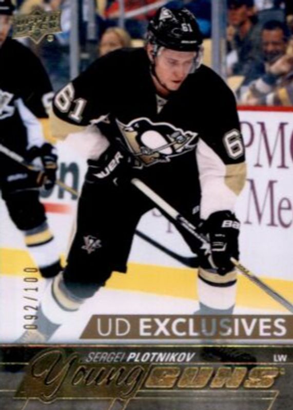 The Sergei Plotnikov 2015 Upper Deck #203 Young Guns - UD Exclusives /100 Rookie card in Raw condition has not changed in price in the last 30 days and was last sold for $1.64 .