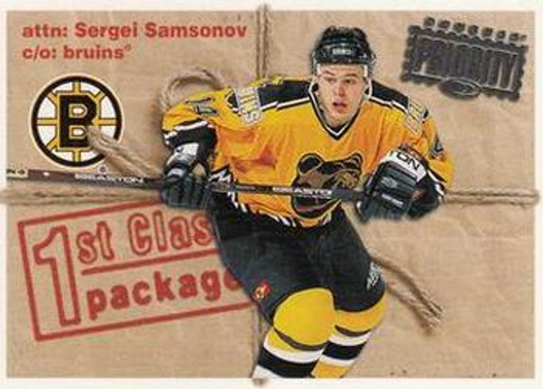 The Sergei Samsonov 1997 Donruss Priority #200 Base Rookie card is 1 of 14 Sergei Samsonov's card variations in the 1997 Donruss Priority set being tracked by Sports Card Investor, including #178 Base, #218 Base, #6 Direct Deposit Promos, #218 Stamp of Approval /100, and #178 Stamp of Approval /100.