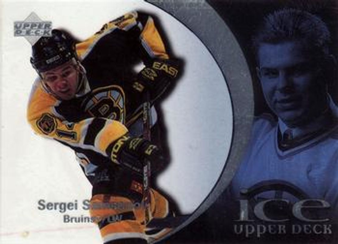 The Sergei Samsonov 1997 Upper Deck Ice #43 Base Rookie card is 1 of 7 Sergei Samsonov's card variations in the 1997 Upper Deck Ice set being tracked by Sports Card Investor, including Parallel, Power Shift, Champions, Lethal Lines, and Lethal Lines 2.