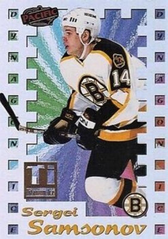The Sergei Samsonov 1998 Pacific #3 Titanium Ice /99 card is 1 of 9 Sergei Samsonov's card variations in the 1998 Pacific set being tracked by Sports Card Investor, including Base, Ice Blue, Red, Cramer's Choice, and Dynagon Ice.