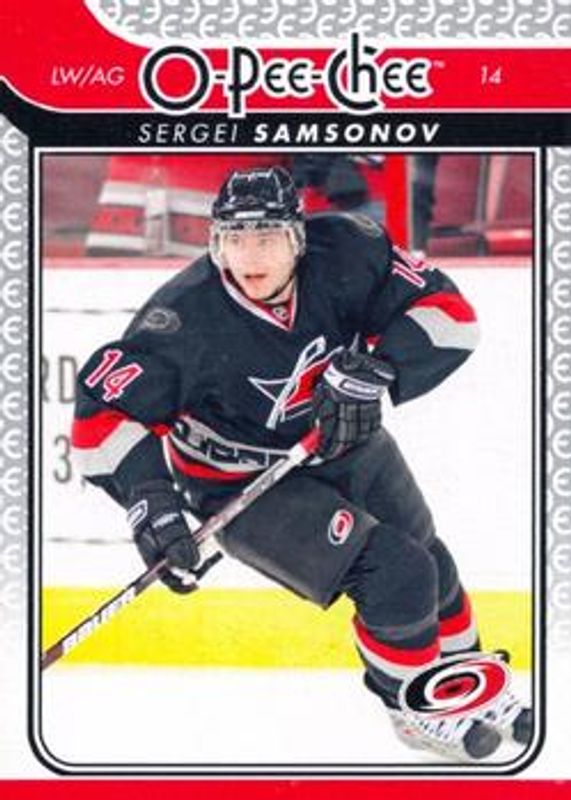 The Sergei Samsonov 2009 O-Pee-Chee #4 Base card is 1 of 5 Sergei Samsonov's card variations in the 2009 O-Pee-Chee set being tracked by Sports Card Investor, including Rainbow, Retro, Retro Blank Back, and Retro Rainbow /100.