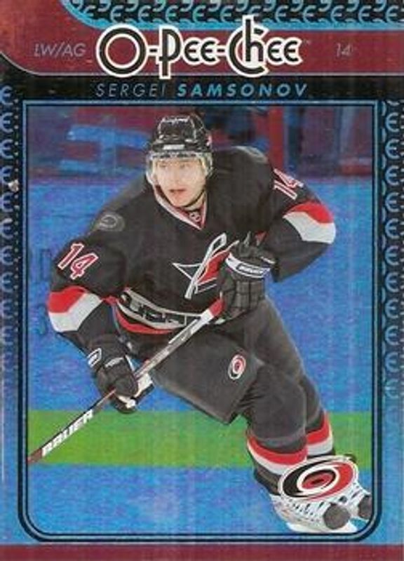The Sergei Samsonov 2009 O-Pee-Chee #4 Rainbow card is 1 of 5 Sergei Samsonov's card variations in the 2009 O-Pee-Chee set being tracked by Sports Card Investor, including Base, Retro, Retro Blank Back, and Retro Rainbow /100.