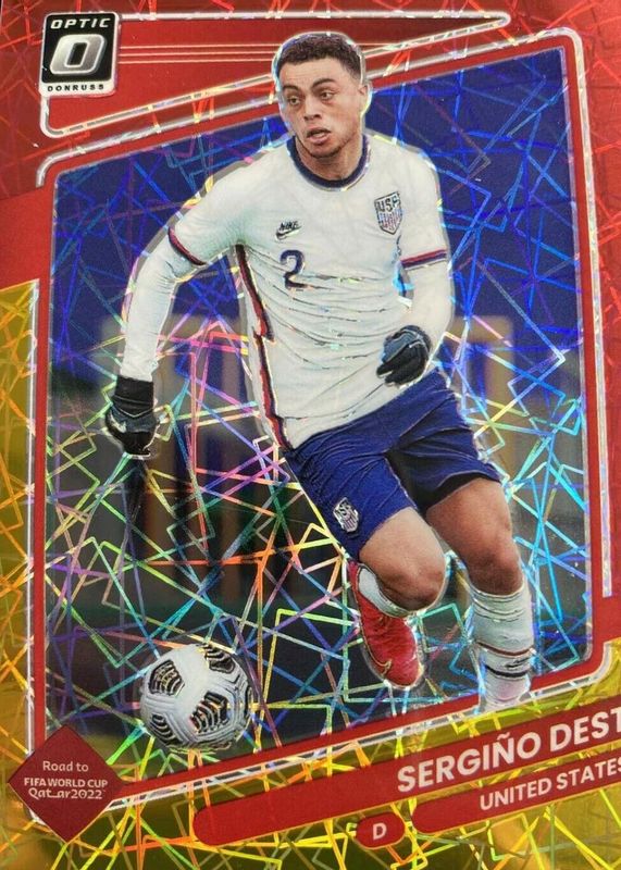 The Sergino Dest 2021 Donruss #162 Optic - Red & Gold Velocity /8 card in Raw condition has not changed in price in the last 30 days and was last sold for $210.38 .