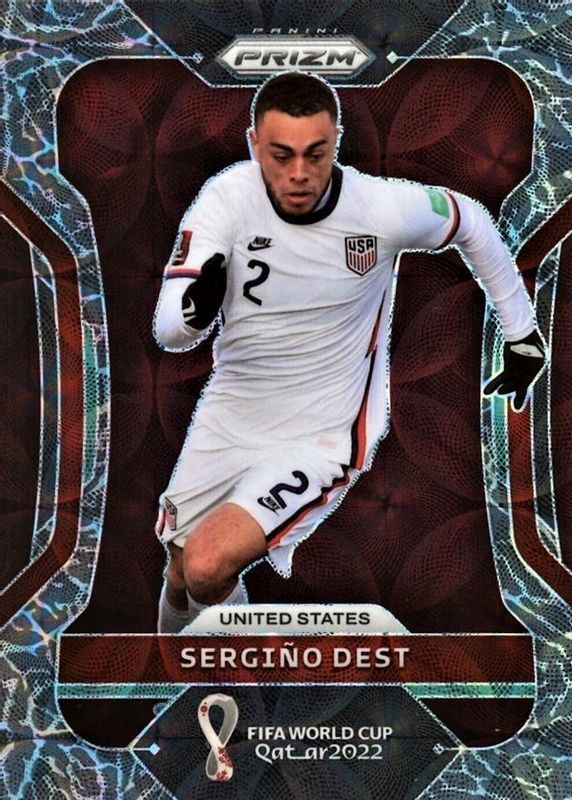 This card is 1 of 36 Sergino Dest's card variations in the 2022 Prizm World Cup set being tracked by Sports Card Investor, including Breakaway, Choice Red, Green Ice, Green Wave, and Hyper.