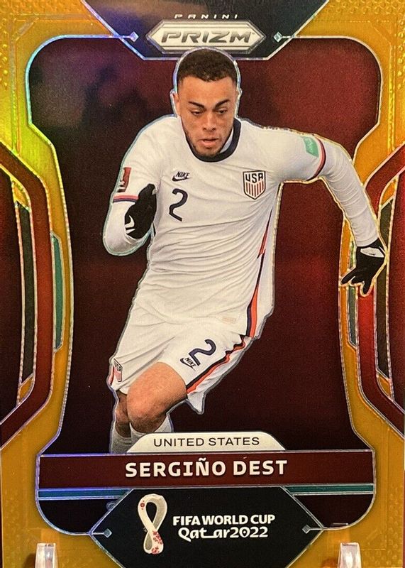 This card is 1 of 36 Sergino Dest's card variations in the 2022 Prizm World Cup set being tracked by Sports Card Investor, including Breakaway, Choice Red, Green Ice, Green Wave, and Hyper.