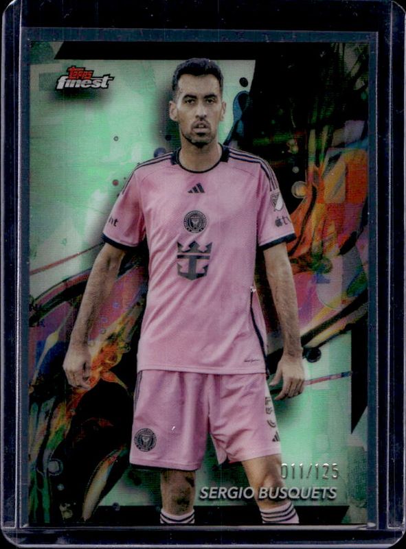 The Sergio Busquets 2024 Topps Finest MLS #5 Neon Green Refractor card is 1 of 67 Sergio Busquets' card variations in the 2024 Topps Finest MLS set being tracked by Sports Card Investor, including #142 Base, #251 Base, #5 Base, #142 Aqua Refractor, and #5 Aqua Refractor.