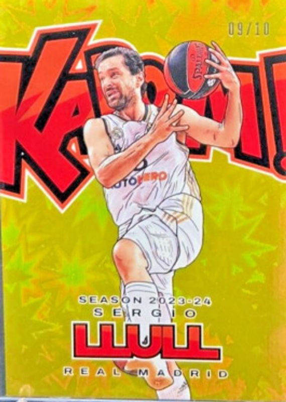 The Sergio Llull 2023 Crown Royale EuroLeague #20 Kaboom! - Gold /10 card in Raw condition has not changed in price in the last 30 days and was last sold for $500.00 .
