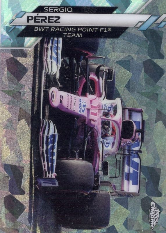 This card is 1 of 24 Sergio Perez's card variations in the 2020 Topps Chrome Formula 1 Sapphire Edition set being tracked by Sports Card Investor, including Base, F1 Cars, F1 Racers, Aqua /99, and F1 Racers - Aqua /99.