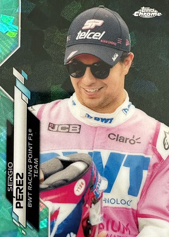 This card is 1 of 24 Sergio Perez's card variations in the 2020 Topps Chrome Formula 1 Sapphire Edition set being tracked by Sports Card Investor, including Base, F1 Cars, F1 Racers, Aqua /99, and F1 Cars - Aqua /99.
