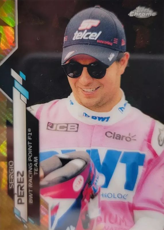 This card is 1 of 24 Sergio Perez's card variations in the 2020 Topps Chrome Formula 1 Sapphire Edition set being tracked by Sports Card Investor, including Base, F1 Cars, F1 Racers, Aqua /99, and F1 Cars - Aqua /99.