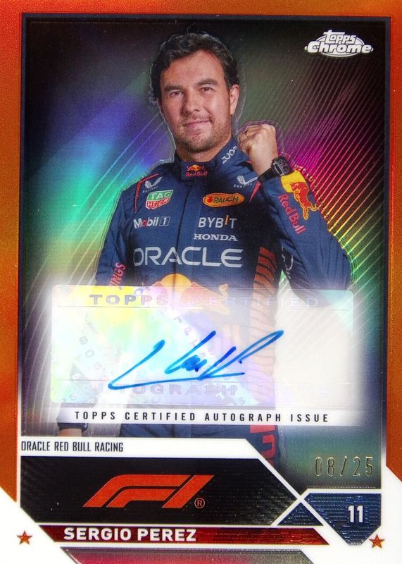 2023 Topps Chrome Formula 1 Sergio Checo Perez Orange Refractor Auto /25 RedBull