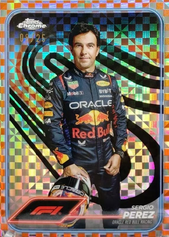 Sergio Perez 2024 Topps Chrome Formula 1 #2 Orange Checker Flag Refractor /25 RAW Price Guide