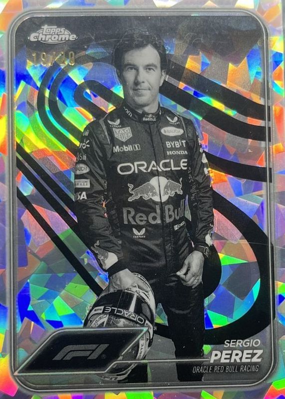 This card is 1 of 8 Sergio Perez's card variations in the 2024 Topps Chrome Formula 1 Sapphire Edition set being tracked by Sports Card Investor, including Base, Aqua /99, Gold /50, Orange /25, and Purple /10.