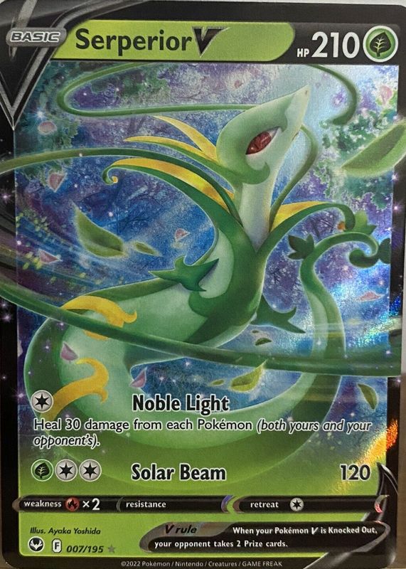 The Serperior V 2022 Sword & Shield: Silver Tempest #007/195 Holo card in Raw TCG (Near Mint) condition has moved up $0.28 (+13.4%) in the last 30 days and was last sold for $2.37 .