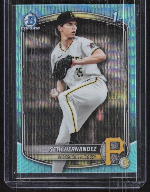 The Seth Hernandez 2025 Bowman Draft #BDC-25 Chrome - Aqua Wave Refractor /125 (1st) card in Raw condition has moved down -$19.00 (-42.2%) in the last 30 days and was last sold for $26.00 .