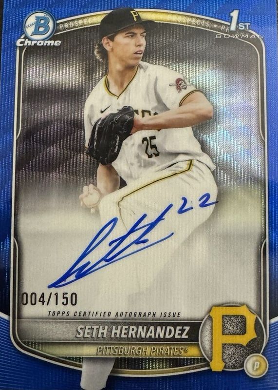 2025 Bowman Draft Chrome SETH HERNANDEZ BLUE WAVE Auto /150 1st Prospect Pirates